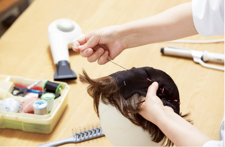 サイズの合ったウィッグを選んでもらえ、かぶり方のポイントを丁寧に教えてくれる。